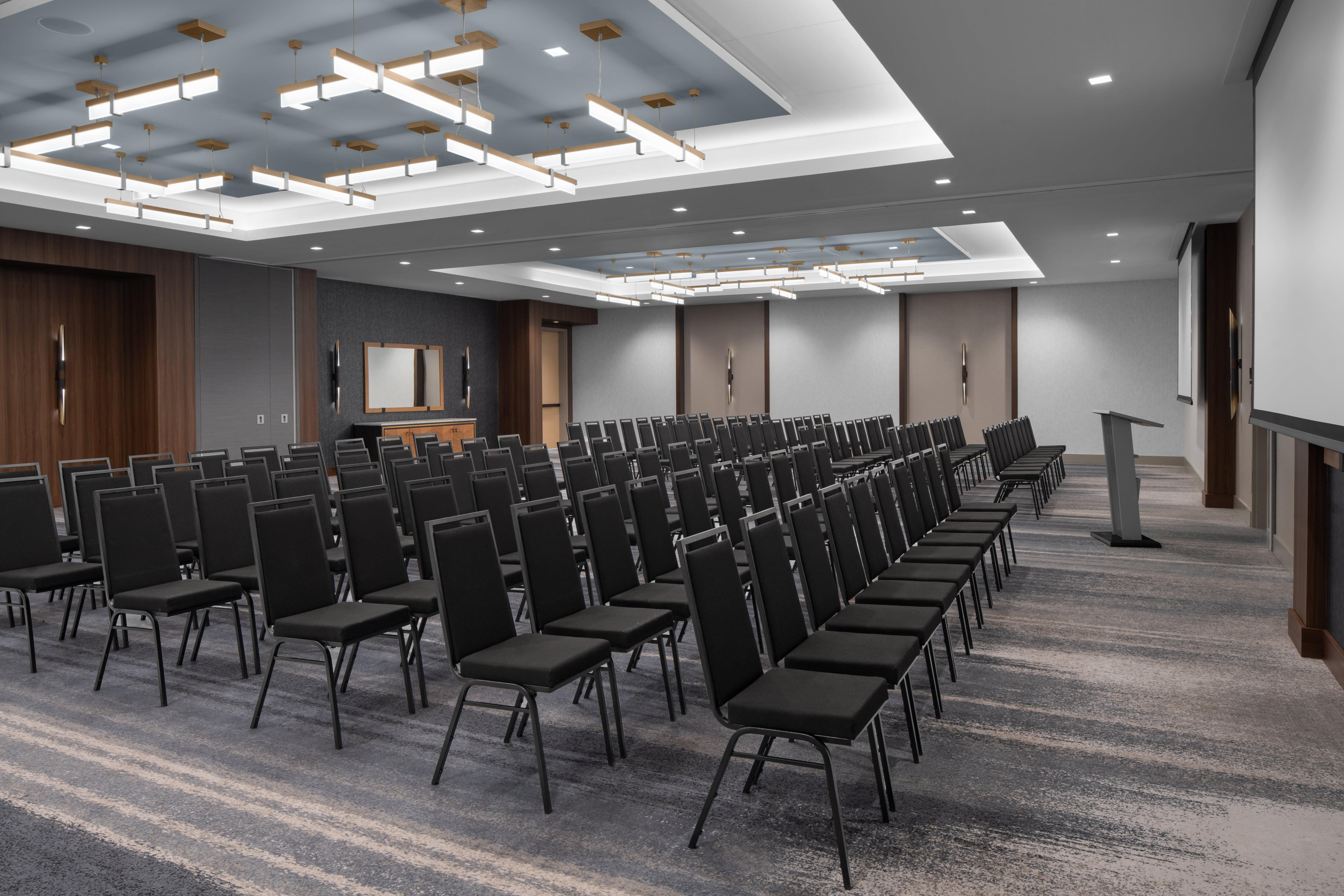 Spanning a total of 3,519 square feet of event space, the stunning and versatile SORA West Ballroom is our grandest venue, capable of accommodating a reception for 352 guests or a theater-style function for up to 391 attendees.